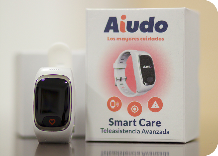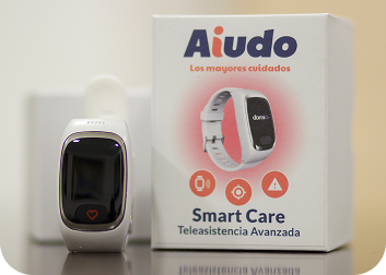 Reloj inteligente con teleasistencia 24h para mayores: informa a la familia y a Aiudo en tiempo real y actúa al instante ante emergencias.